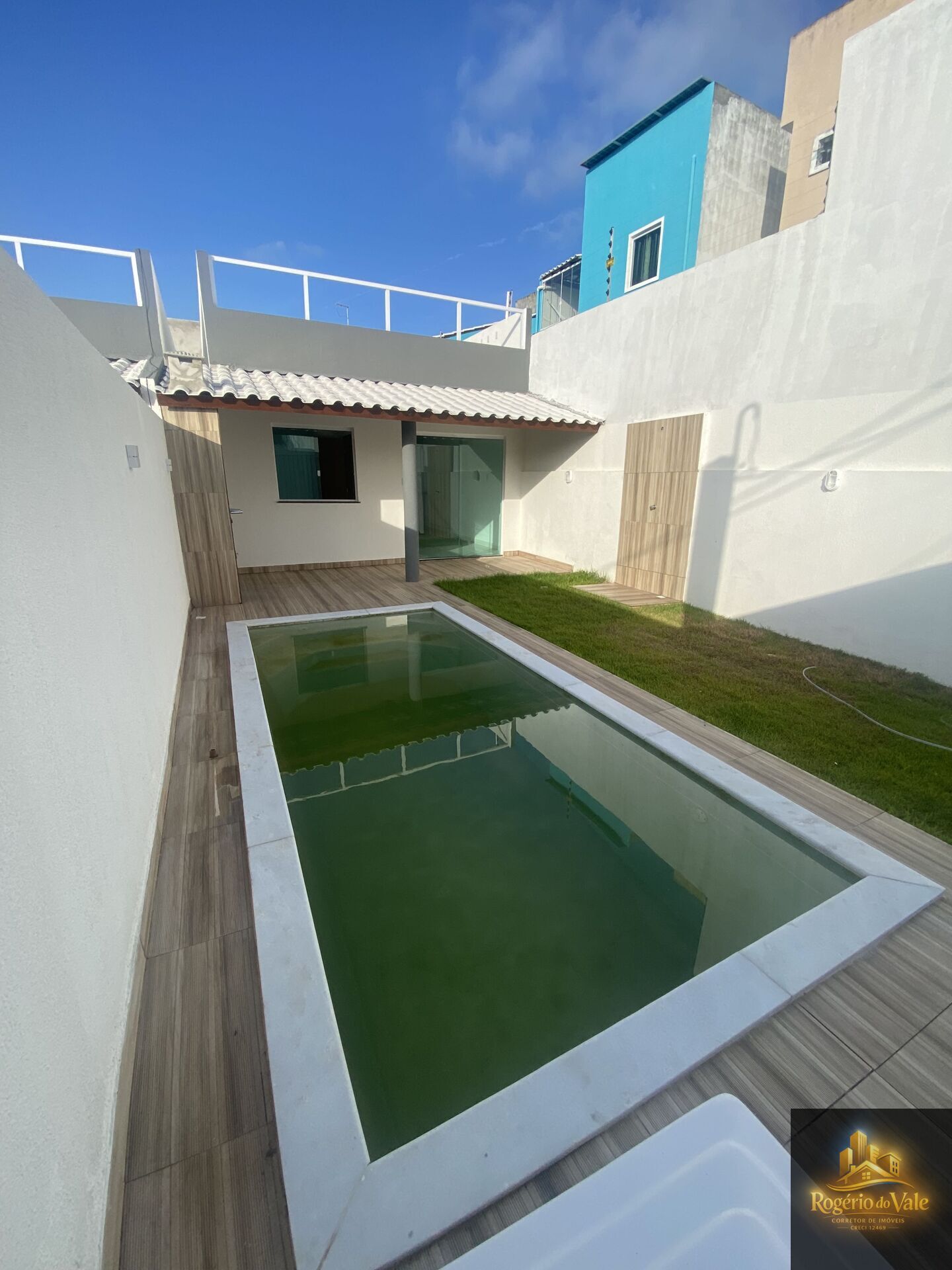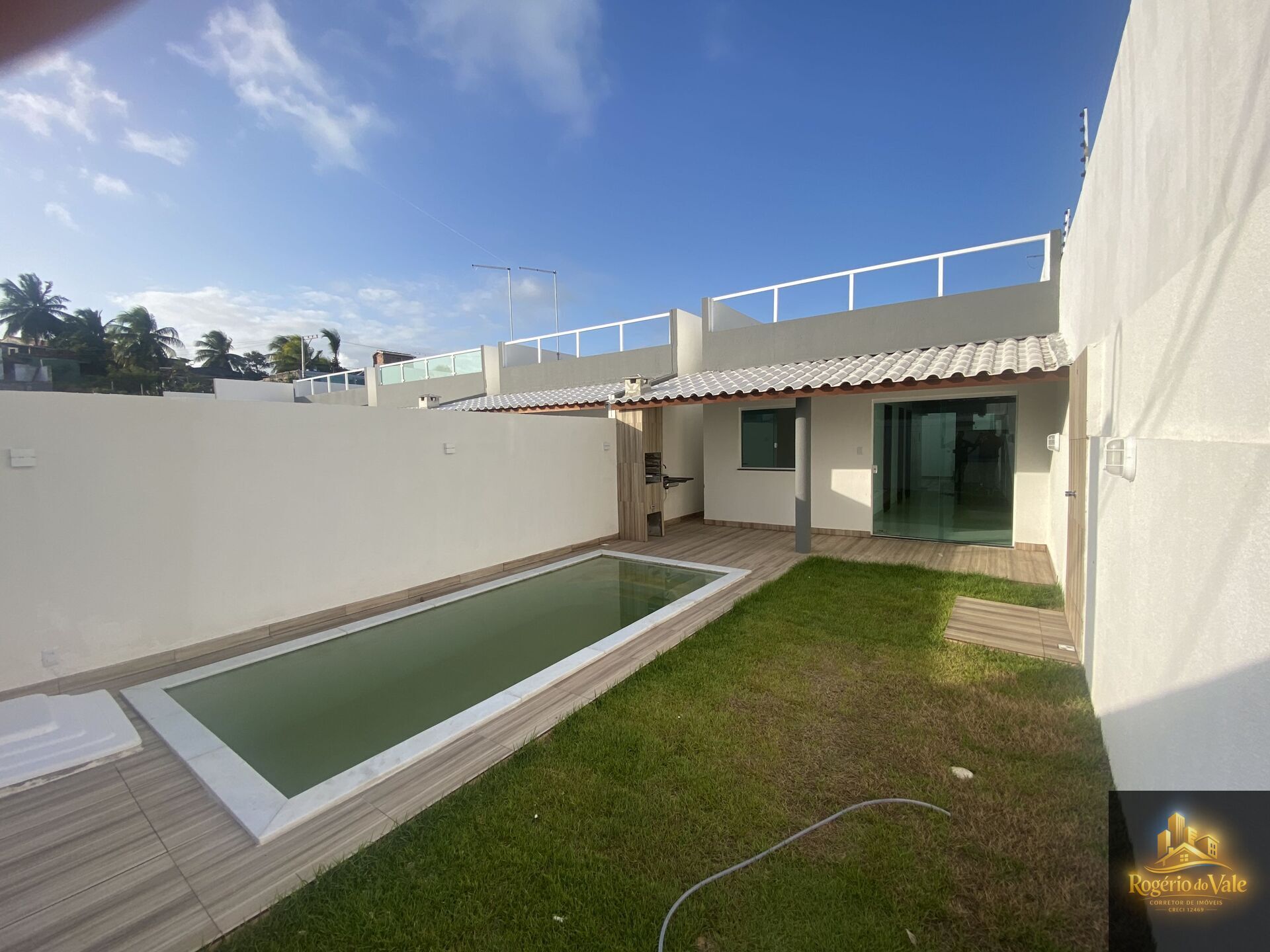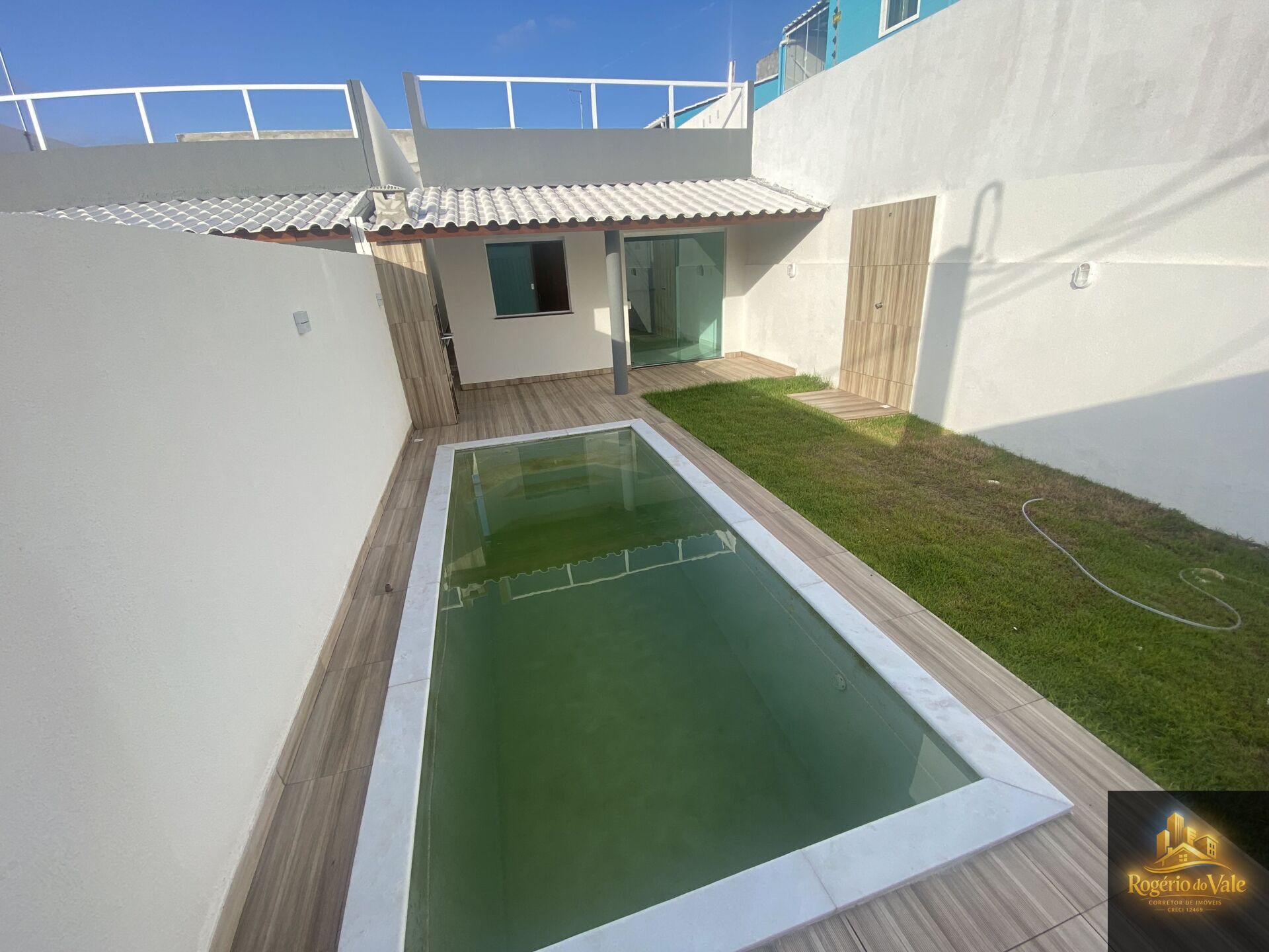 02 Quartos Suite, Piscina, Sala , Cozinha, Área de Serviço, Área Externa, Banheiros, grama etc